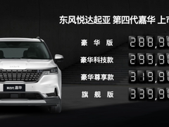 9月13日晚,起亚全新MPV嘉华正式在国内上市,新车属于嘉华的第4代车型,全系搭载2.0T发动机,共推出4款配置,售价区间28.89-33.99万元。 该车是起亚嘉华的第四代车型,外观方面保留了海外版车型的整体造型,车头采用SUV Looking概念设计,点阵式镀铬的中网和两侧灯组连为一体,中间是起亚品牌的最新LOGO,营造了不错的时尚气息。内饰方面,起亚嘉华倒是没有太多惊喜,毕竟这套最新的家族式设计我们已经在K5上见到过了,具体来看,新车配备了两块12.3英寸大联屏、三幅式多功能方向盘和旋钮式换挡机构。动力方面,嘉华全系搭载一台2.0T发动机,最大功率233马力,最大扭矩353N·m,匹配8AT变速箱和前轮驱动,满足日常使用没有问题。并且这台2.0T发动机只需要加92号汽油,对于后期开支也是一个优势。