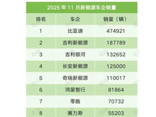 11月新能源销量:新势力排位洗牌,传统车企增速凶猛