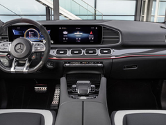 奔驰AMG GLE 63 S 4MATIC+轿跑SUV官图 梅赛德斯-AMG日前发布了一组新一代AMG GLE 63 S 4MATIC+轿跑SUV官图。该车整体设计基本延续了此前发布的AMG GLE 53 4MATIC+轿跑SUV,不过在外观及内饰细节上有了更加动感的改变。作为全新GLE轿跑SUV的最强性能版车型,该车搭载一台4.0L双涡轮增压V8发动机,并且配备了48V轻混系统,百公里加速仅需3.8s。 外观方面,虽然全新AMG GLE 63 S 4MATIC+轿跑SUV基本延续了此前发布的AMG GLE 53 4MATIC+轿跑SUV,霸气的直瀑式格栅和LED大灯都得到完美延续,但由于等级更高,性能更强,AMG GLE 63 S 4MATIC+轿跑SUV采用了更加动感的前包围,此外我们发现其贯穿式开孔两端的黑色面板也进行了调整,尺寸更大,看起来更霸气 内饰方面,该车配备了带有铝制换挡拨片的三辐式AMG Performance方向盘,标准车型配备黑色Nappa真皮,S车型则配备了Nappa真皮和DINAMICA超细纤维材质,并且客户可以通过调整AMG方向盘按钮设置车辆动态数据。同时,该车还搭载带橡胶钉的不锈钢脚踏板、迎宾踏板、带有AMG字样脚垫,而S车型还配备了更加个性的灰色安全带和银灰色座椅缝线。