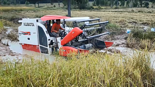 新买的久保田不小心陷泥坑无法动弹,请挖掘机来帮忙能脱困吗?