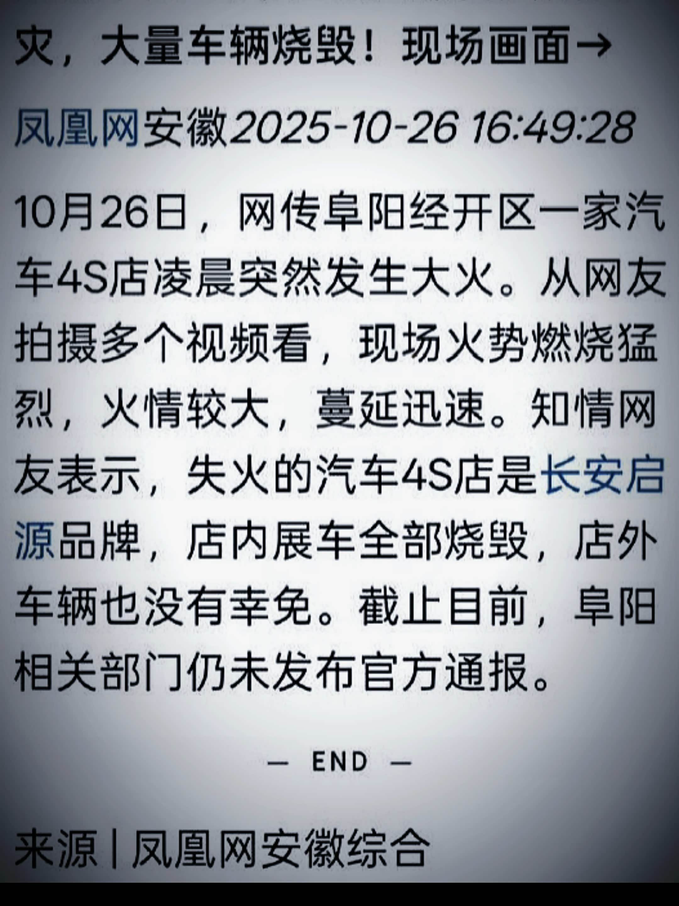 阜阳经开区一家长安启源汽车4S店凌晨突然发生大火!