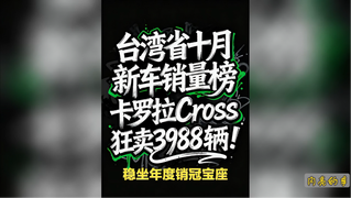 台湾省十月新车销量榜:卡罗拉 Cross狂卖3988辆!