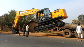 来看看老司机是怎么把20吨的大型挖掘机开下板车的