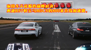 家用车天花板的巅峰对决!奥迪RS7和宝马M5CS的800米直线加速赛。