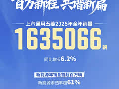 上汽通用五菱公布2025年成绩,累计销售1635066辆,同比增长6.2%,表现还算不错,截至2025年底累计产销量已突破3100万辆。 其中最亮眼的当属新能源板块,一共卖了1000066辆,同比增长31.9%,新能源年销量首超百万辆,新能源渗透率超61%。 海外出口方面,年度累计销量266868辆,同比增长18.6%,连续10年增长,其中新能源贡献了主要增量,年度出口累计销量94686辆,同比增长128.6%。 具体品牌方面,五菱红标全年销量577886辆,获全国商用车累计销量冠军,其中新能源商用车全年销量148166辆,同比增长113%,获新能源商用车市场销量第一。 五菱银标全年销量741310辆,同比增长8.8%,乘用车板块新能源销量占比超过95%。 宝骏汽车全年销量49002辆,同比增长12.3%。 可以看到,上汽通用五菱2025年的成绩单可称为含金量十足,在维持整体规模的同时,实现新能源及出口的双重突破。2026年,上汽通用五菱与华为合作的首款车型”华境S“将于上半年上市,有望迎来更具想象力的成长空间。
