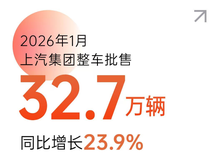 1月销售32.7万辆,同比大涨23.9%,上汽集团经营向新向好