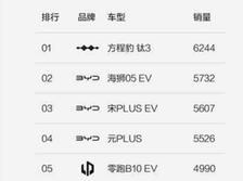 方程豹豹5再登硬派越野周销榜首,钛3以6244辆获A级纯电SUV桂冠
