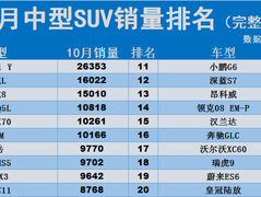 10月中型SUV销量榜解析,Model Y下滑仍夺冠,昂科威、GLC未破万