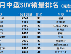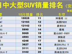 10月中大型SUV销量榜:1-51名,国产车霸榜,宝马X5第4,途昂第7