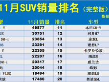 11月SUV销量榜(完整版):哈弗H6回升,CR-V未进前十,GLC低迷