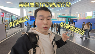 参观比亚迪闪充站,看起来很像加油站,还有便利店和咖啡店