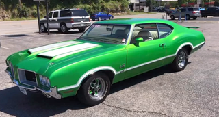 实拍车评:1971 Oldsmobile Cutlass,这绿色的车身真漂亮!
