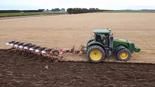 新疆的地是真硬,约翰迪尔2204拉雷肯5铧翻转犁大油门翻地