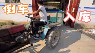 农村四轮拖拉机带拖斗,倒车入库是个技术活,老司机大哥一次成功