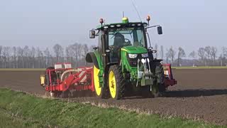 约翰迪尔6115R拖拉机配备卫星导航,搭载精量播种机种植圆葱