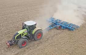 雷肯8米折叠型圆盘耙操作展示 克拉斯大马力拖拉机牵引工作