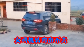 女司机转弯出不去,来回刮蹭车子,下车后的一个举动让人无语