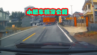 小轿车横穿公路,大挂车急刹神龙摆尾,庆幸躲过一劫