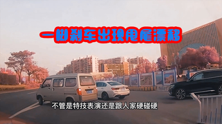 面包车为了避让右方车辆,结果一脚刹车出现甩尾漂移