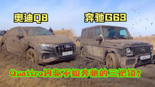 奥迪Q8烂泥路越野对比奔驰G63,Quattro四驱不如奔驰的三把锁?