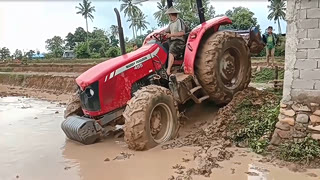 老司机现场演示,拖拉机在田间打滑怎么处理,太牛了