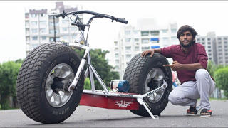 牛人自制了一台大脚的踏板车,用它去兜风爽的不要不要的