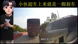 小伙超车上来就是一脚刹车,来回好几次