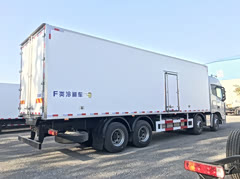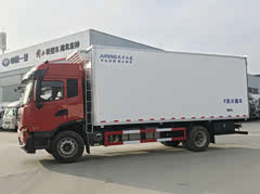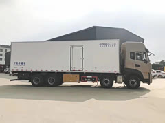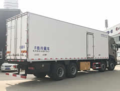 国六9米6冷藏车,东风天龙前四后八冷藏车龙擎465马力 整车型号:DFH5310XLCDX 整车尺寸:12000*2600*3990 厢体尺寸:9500*2440*2450 厢体配置:采用断桥隔热新工艺制作,内外玻璃钢板夹聚氨酯保温层真空复合而成,底板为铝花纹板,厢体内部四周加装1米高的铝花纹板,厢体骨架为镀锌管,木质隔温;厢体厚度为8cm;新款铝合金包边型材;厢体内部采用2个LED照明灯及厢体示宽灯;包角,后门框为不锈钢材质;门框密封条为橡胶材质;加厚型不锈钢铰链及锁件;保温效果优于普通工艺厢体。副梁为710L高强度钢制作,强度高,做好油漆后装车,油漆无死角,防锈效果好,带工具箱。