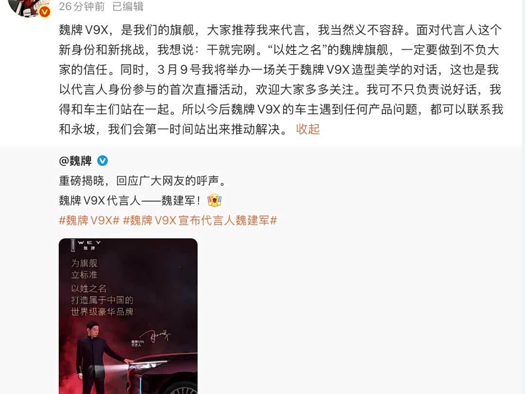 魏建军代言魏牌V9X:一场关于信任的“极限测试”