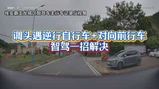 调头遇逆行自行车+对向前行车,智驾一招解决