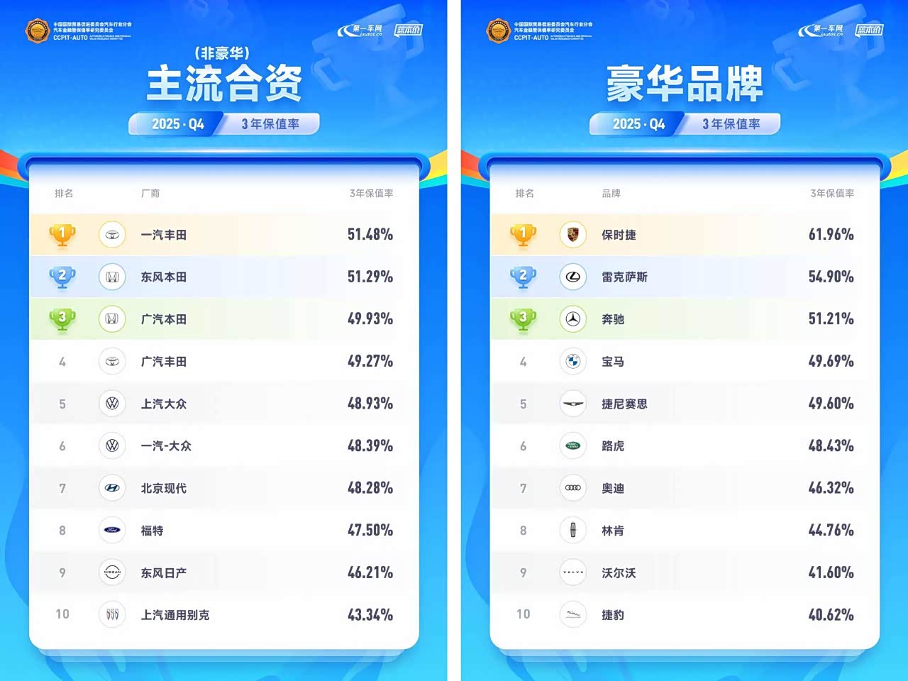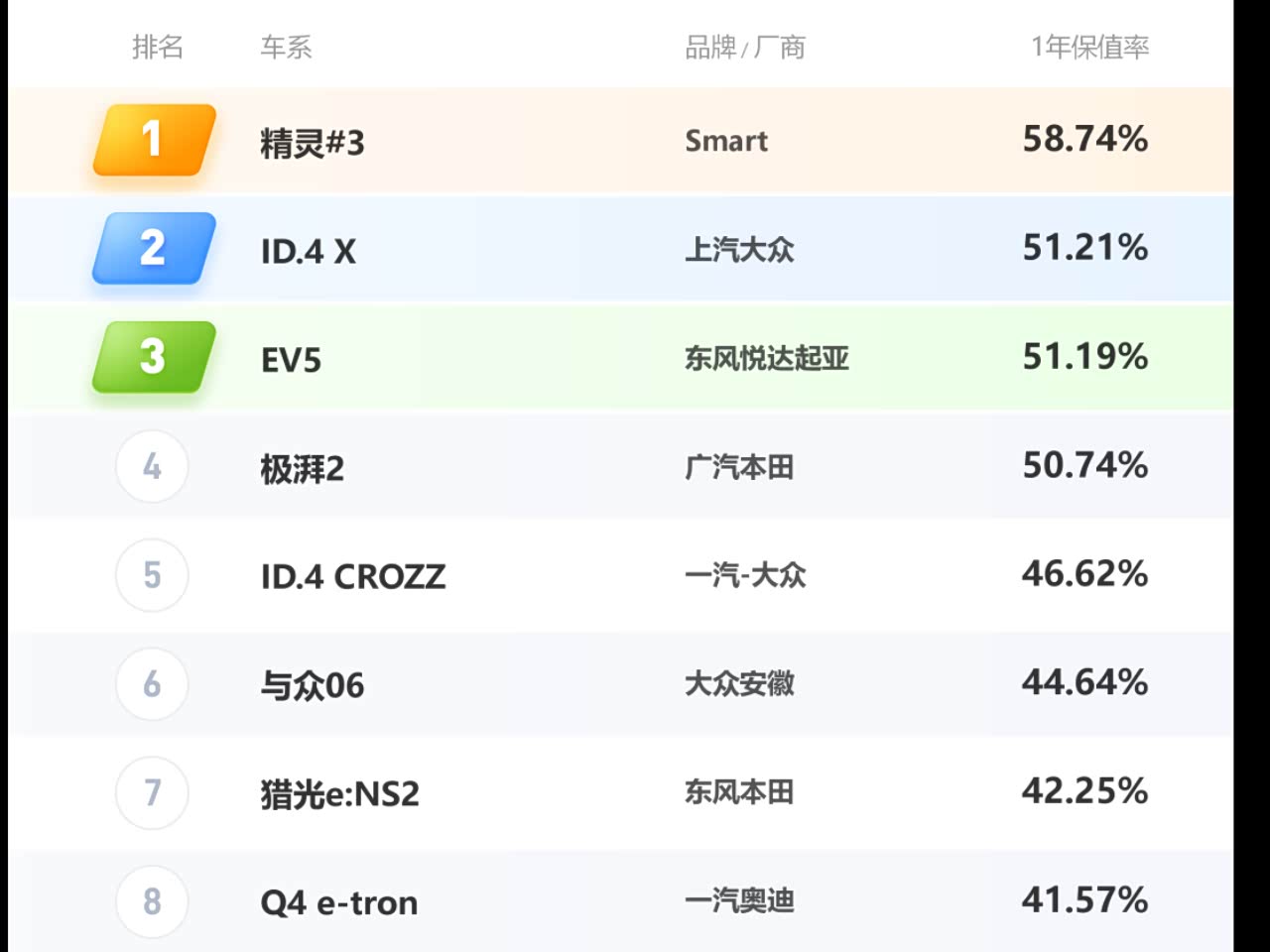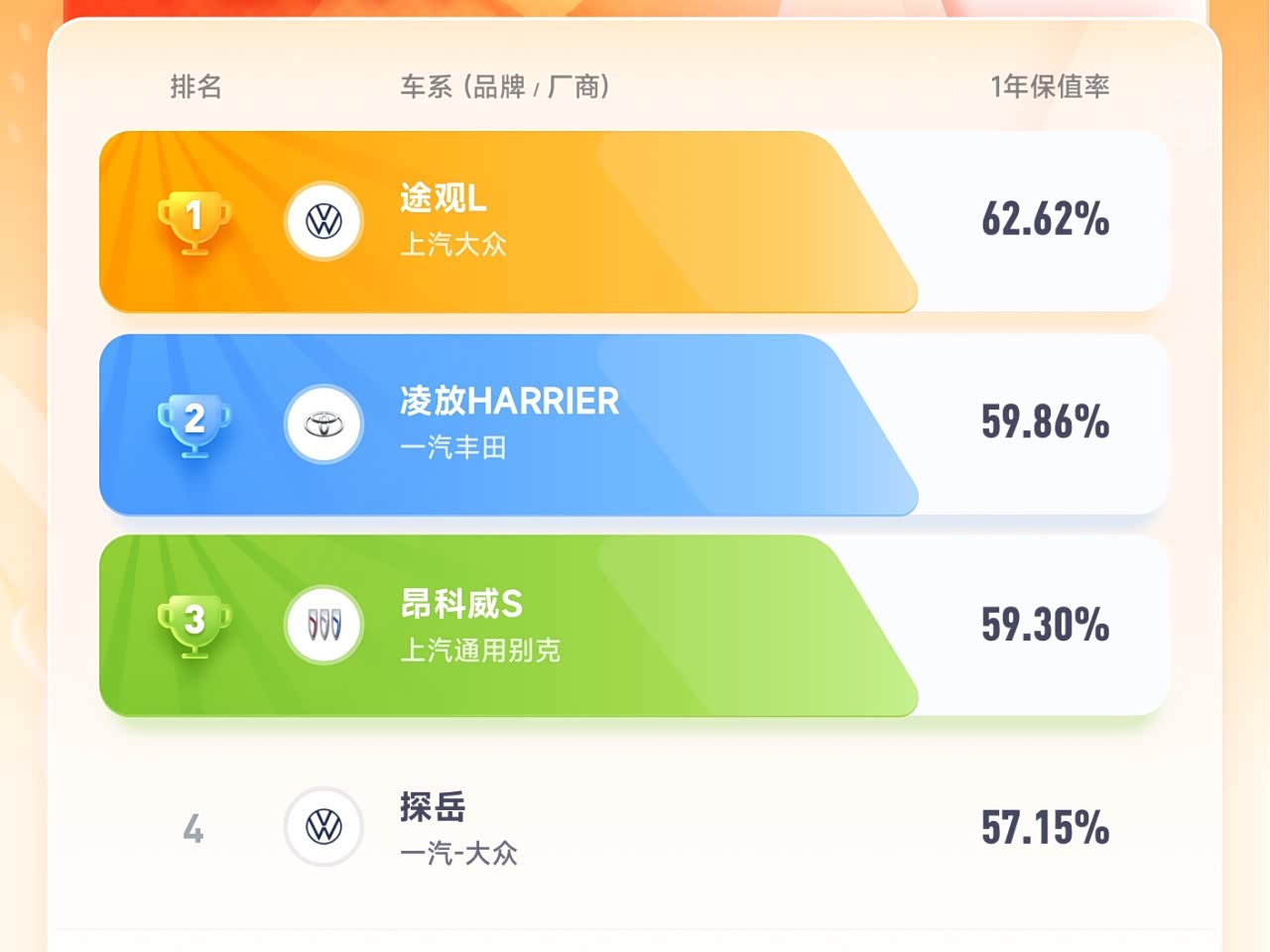 国产中大型SUV保值率榜单合资车型稳坐头部,中国品牌向上突破