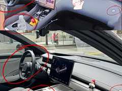 小米YU7最新曝光细节合集 图1:灰色内饰,继橙色与黑色曝光之后,第一次出现灰色内饰图。 图2:发动机挖孔装饰,带防护网,避免树叶等异物掉进去。这个挖孔还有提升空气动力学的作用, 图3:左侧前翼子板,疑似按钮设计,大概率是引擎舱盖电动开启的按键,和SU7 Ultra一致 图4:隐藏式门把手开启和关闭的动态图。 图5:前悬架和空气弹簧细节,大概率双腔空悬。
