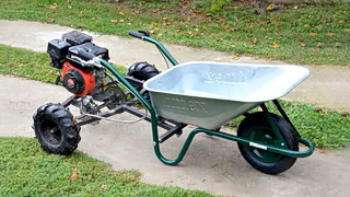 够创意!用手推车DIY“手扶小拖拉机”,要加个座位就更完美了