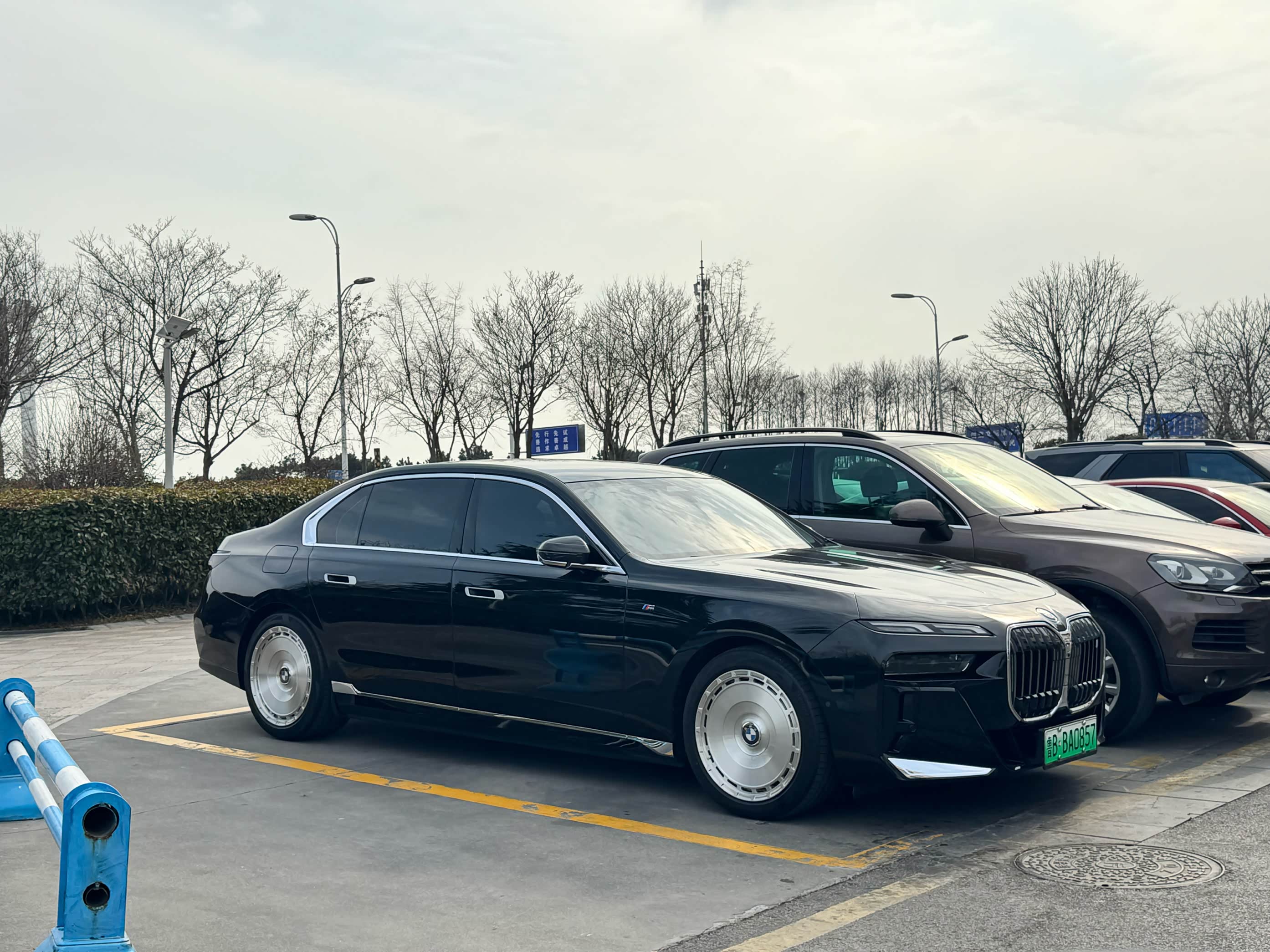 实拍宝马7系配大饼轮毂