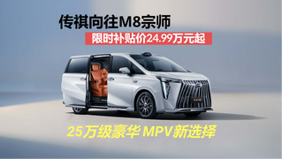 传祺向往M8宗师限时补贴价24.99万元起,25万级豪华MPV新选择