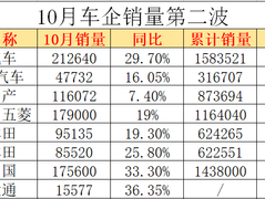 36家车企10月销量 吉利/长城14万逼近大众/通用 奇瑞汽车5.5万
