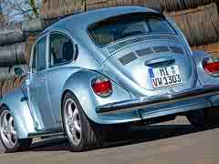 “手艺人”Rüdiger Knepper把一辆在加利福尼亚垃圾场发现的1975年大众1303,成功改装成了一台电动版甲壳虫,他成功的将经典与新能源相结合。 这台名为1303rs-e的电动甲壳虫,除了看得见的地方是甲壳虫外,悬架主要来自保时捷944、刹车来自944 Turbo S、座椅来自宝马2002、17个电池模块来自保时捷Taycan、后轴电机来自特斯拉Model S…… 这台电动版甲壳虫同时拥有出色的性能,可以在2.9秒内冲刺到每小时62英里(约96公里/小时)。