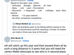 一份对人工智能公司评估的报告称,马斯克创立的xAI落后于行业领先者,马斯克回复并评论称,“xAI将在今年赶上对手,然后在三年内超过所有竞品。”
