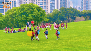 重庆一小学的春日户外课,小朋友在草坪上奔跑、嬉戏,真令人羡慕