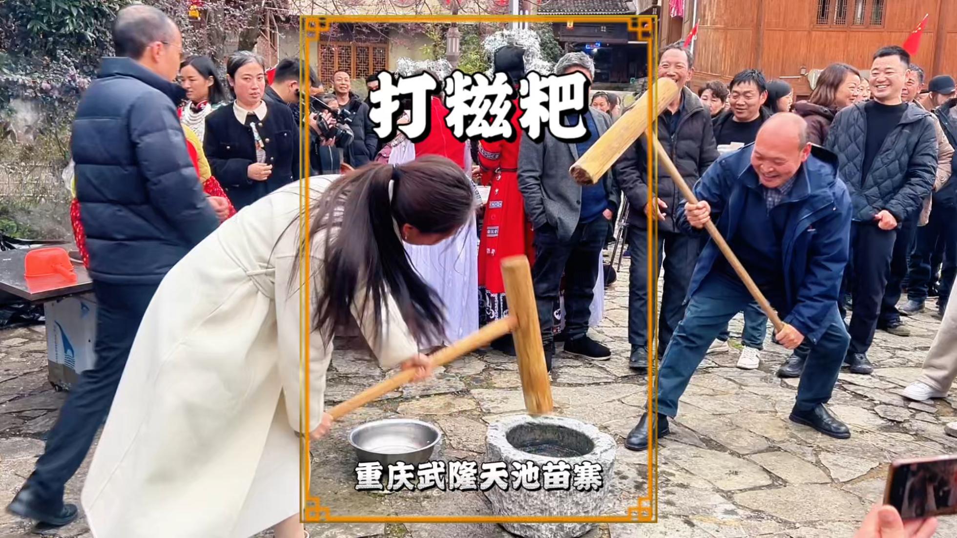 游武隆天池苗寨,体验民俗活动打糍粑,领略热闹的苗乡烟火气