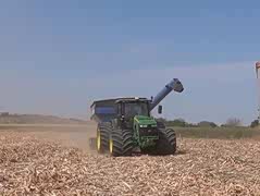东欧地区农场收割玉米作业现场 运粮用的大宽胎拖拉机好帅