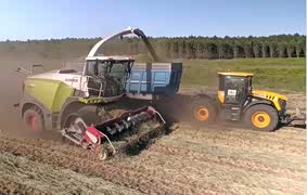 法国农场主改装克拉斯青贮机 安装履带行走 使用捡拾台粉碎牧草