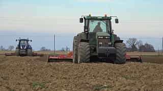 动力耙整地演示 约翰迪尔8200和纽荷兰T8390两台拖拉机作业