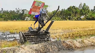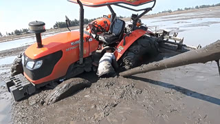 拖拉机整地不小心陷深泥中出不来,村民找来一根木头能顺利脱困吗