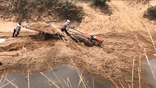 拖拉机过河,不小心陷泥坑无法动弹,这种救援最费劲了