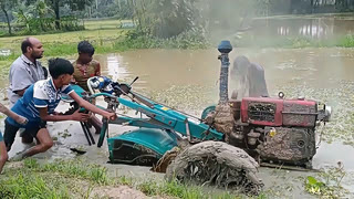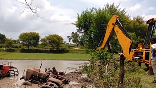 整个拖拉机都陷进去了,挖掘机来救援也很棘手,能不能救出来呢?