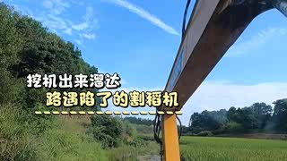 开挖掘机出来溜达,遇险割稻机救援