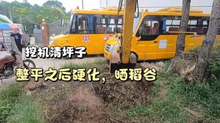 用挖掘机清理场地,清理完硬化,晒稻谷用。