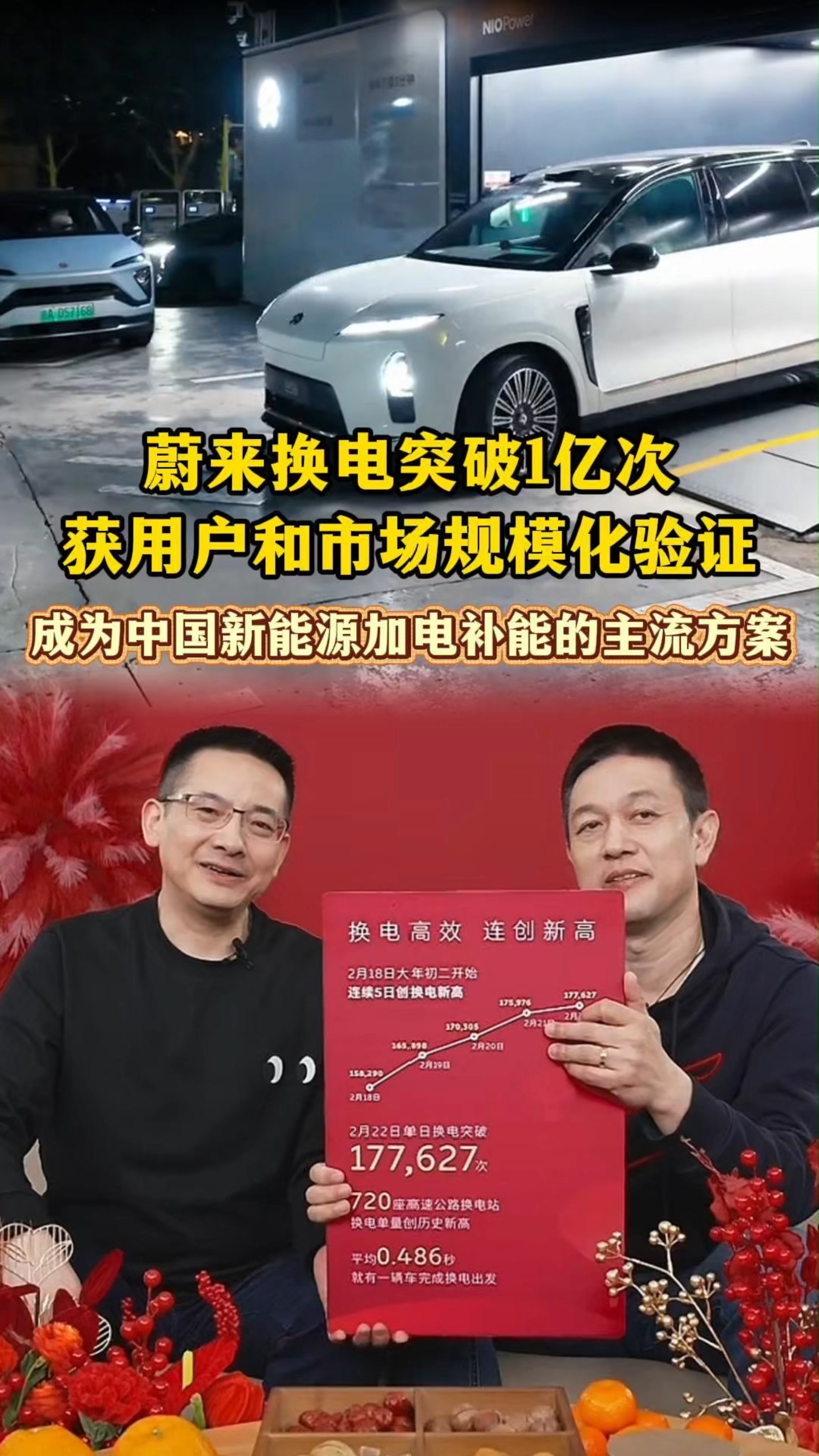 蔚来换电突破1亿次,成为中国新能源加电补能的主流方案。