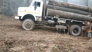 大货车拉木头上坡打滑,司机几乎崩溃,真是难为他了